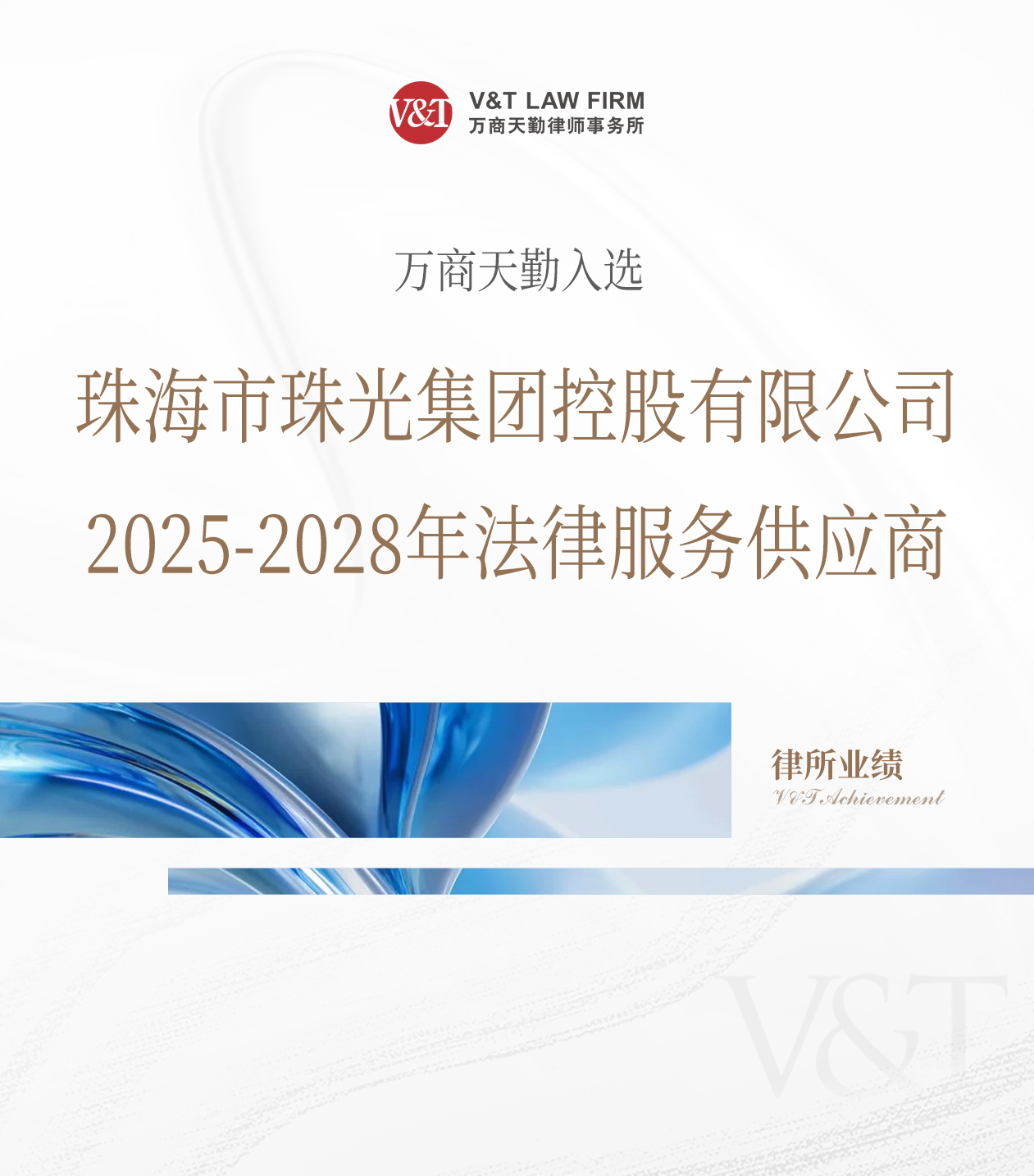 近期,万商天勤深圳办公室合伙人梁华律师、文娜律师、窦婧婷律师凭借其在金融、债券融资领域的深厚专业积淀与丰富实务经验,在数十家投标律师服务机构中脱颖而出,成功中标“珠海市珠光集团控股有限公司 2025-2028年法律服务供应商”。