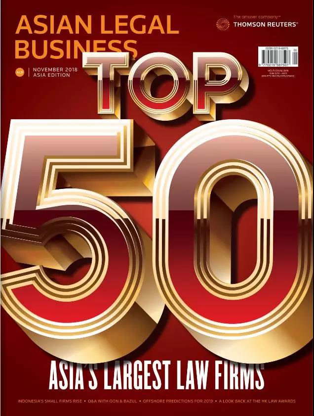 万商天勤律师事务所入选《亚洲法律杂志》(ALB)2018“亚洲最大50家律所”及“中国30大规模律所”