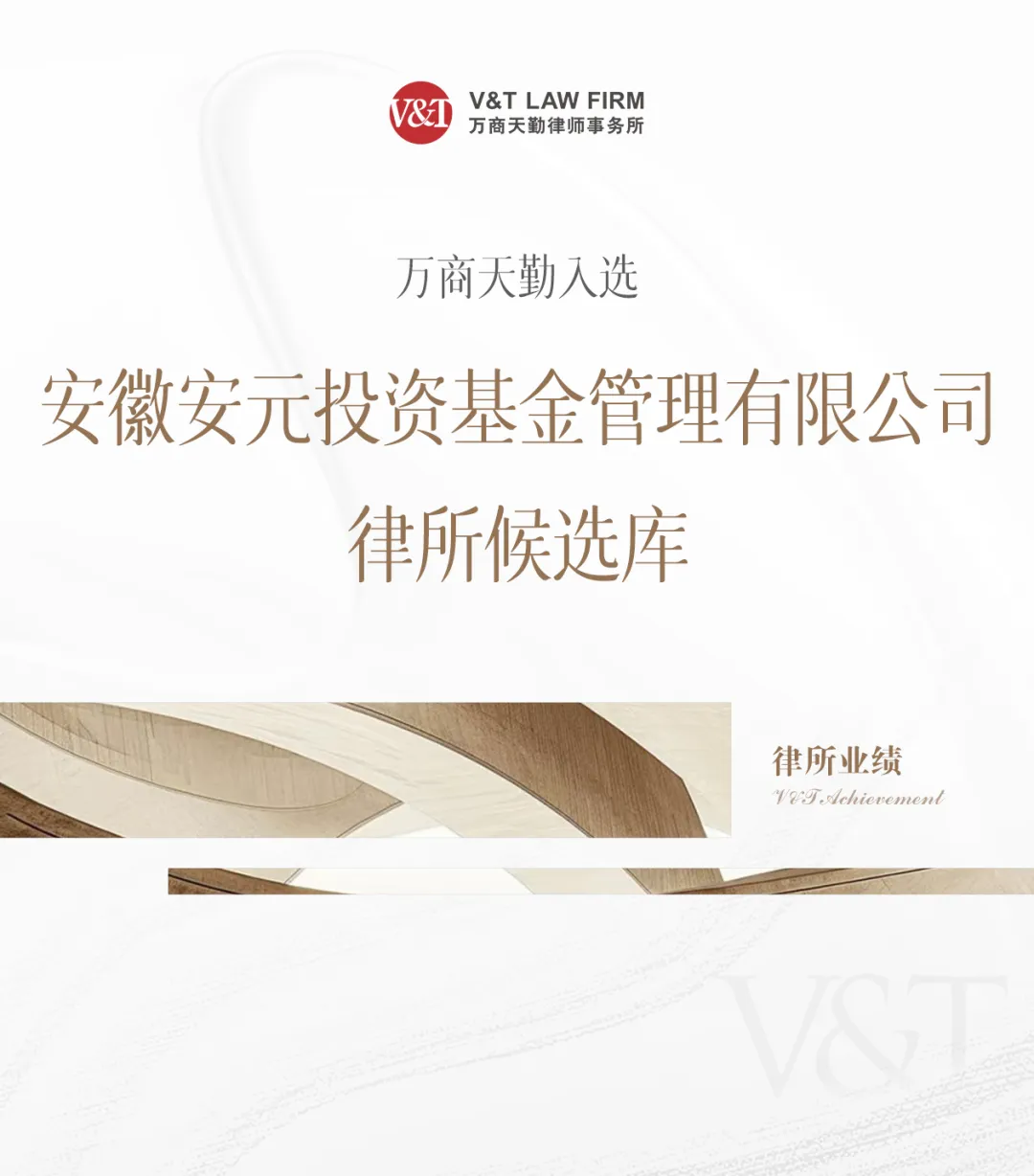 V&T 业绩|万商天勤入选安徽安元投资基金管理有限公司律所候选库