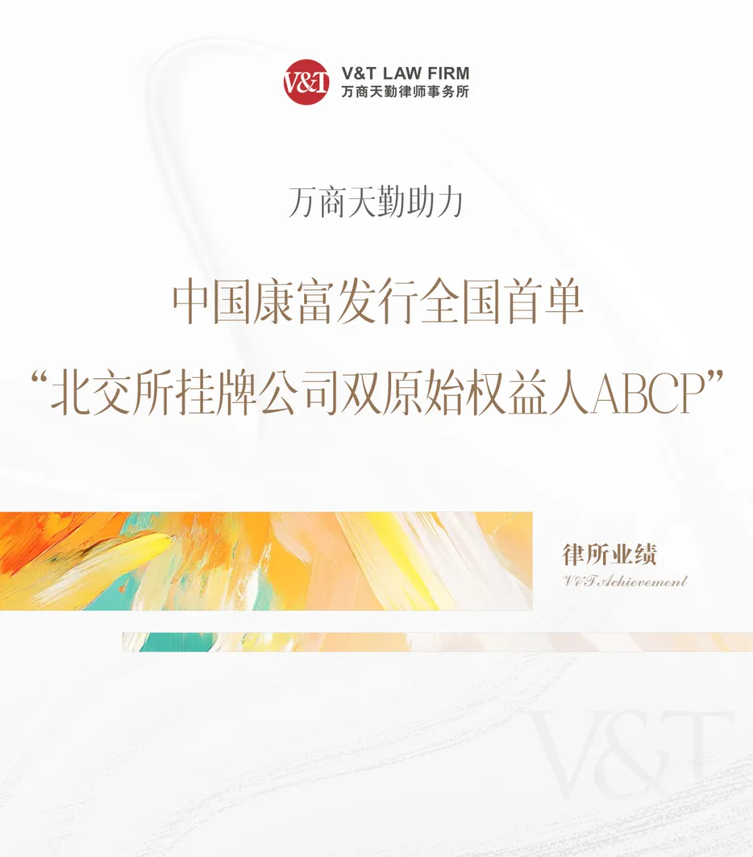 V&T 业绩|万商天勤助力中国康富发行全国首单“北交所挂牌公司双原始权益人ABCP”