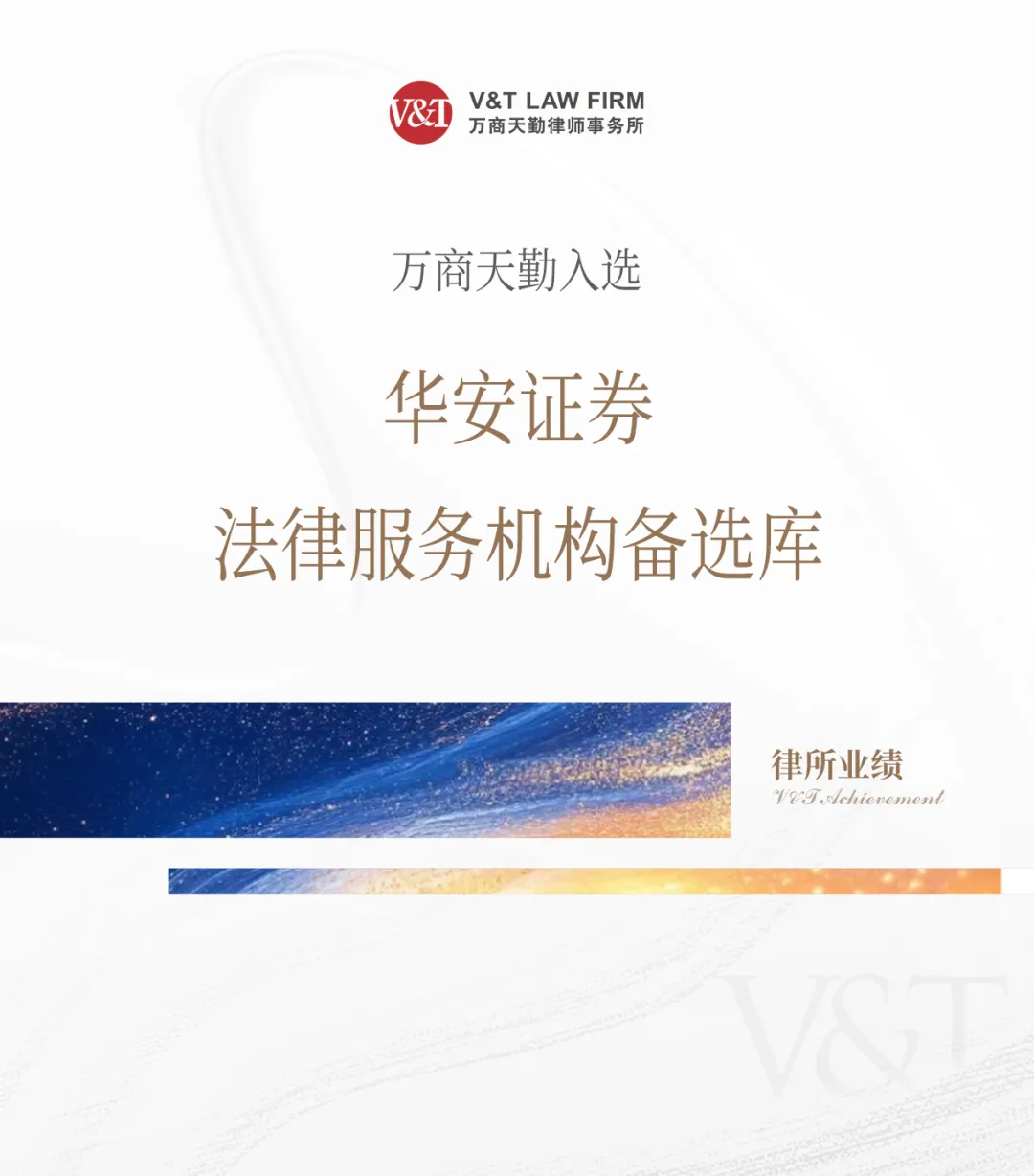 V&T 业绩|万商天勤入选华安证券法律服务机构备选库