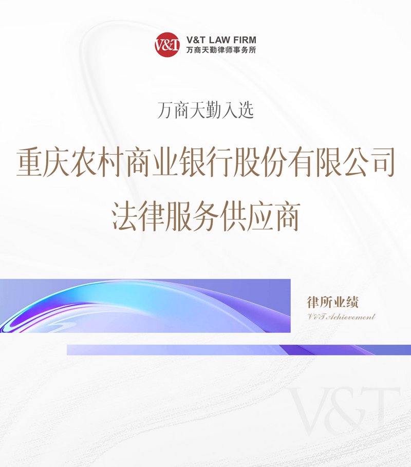 V&T 业绩|万商天勤入选重庆农村商业银行股份有限公司“总行金融市场条线外聘法律服务”供应商