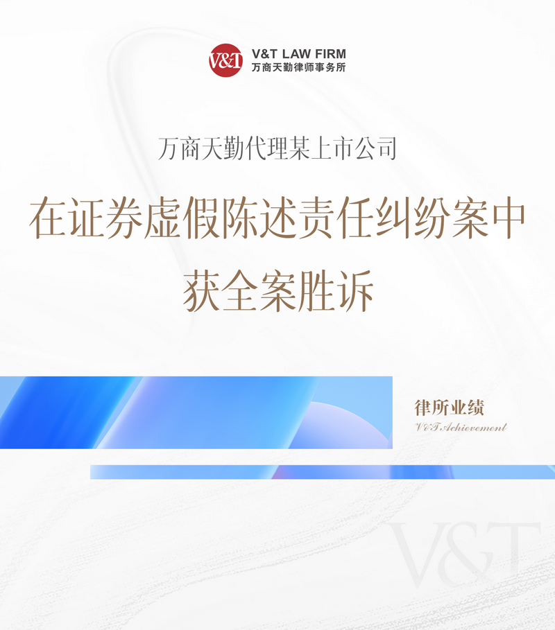 V&T 业绩|万商天勤代理某上市公司在证券虚假陈述责任纠纷案中获全案胜诉